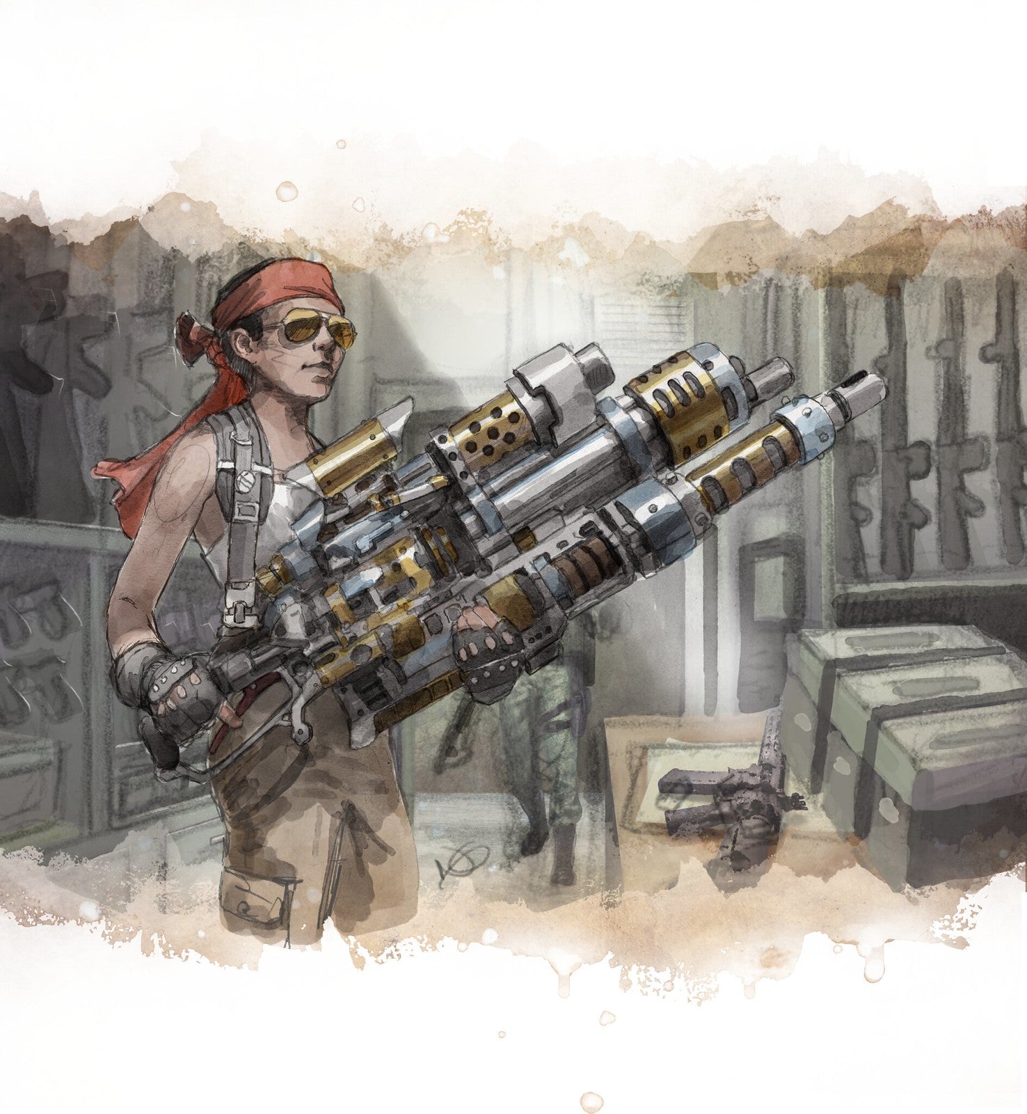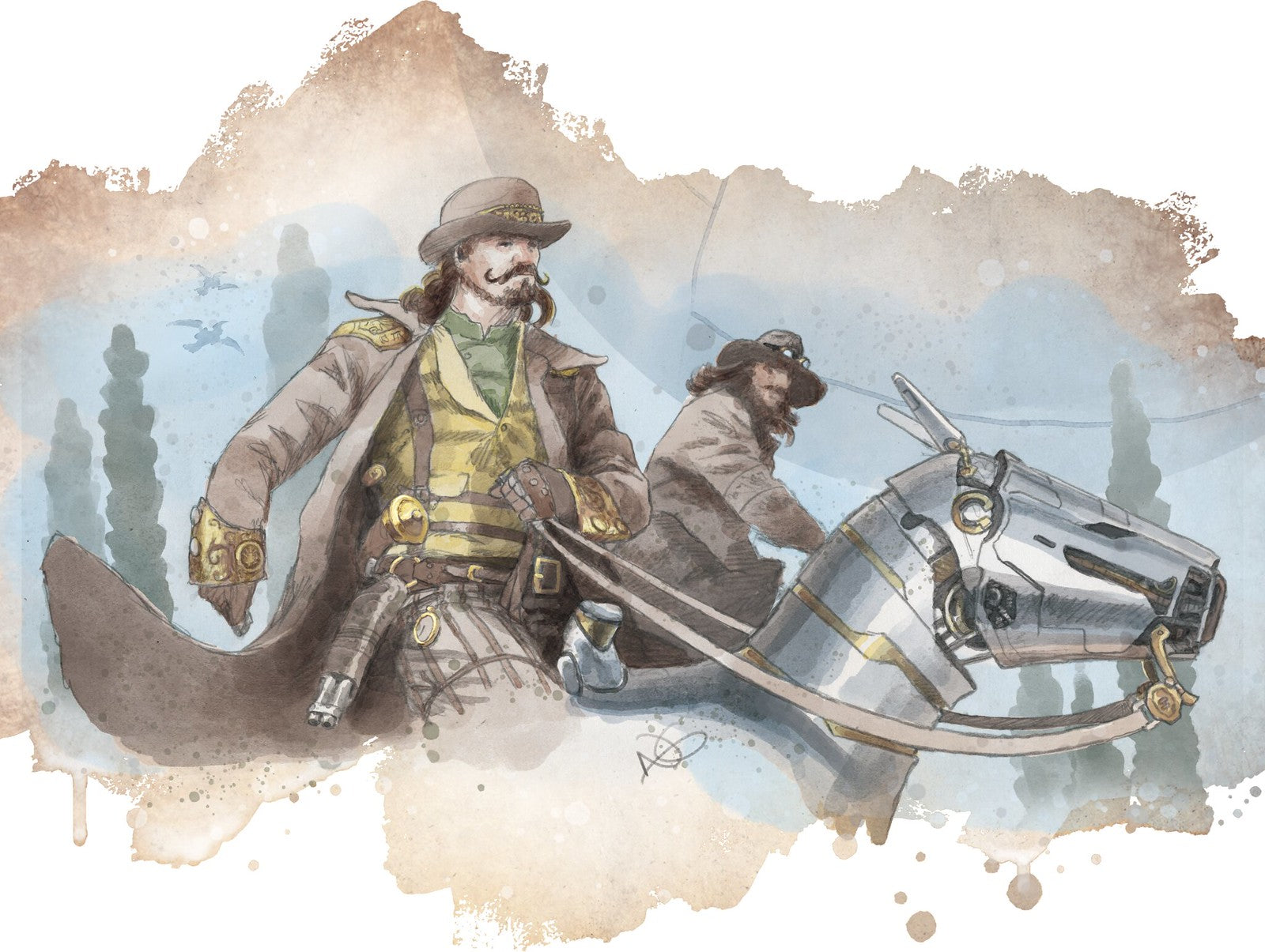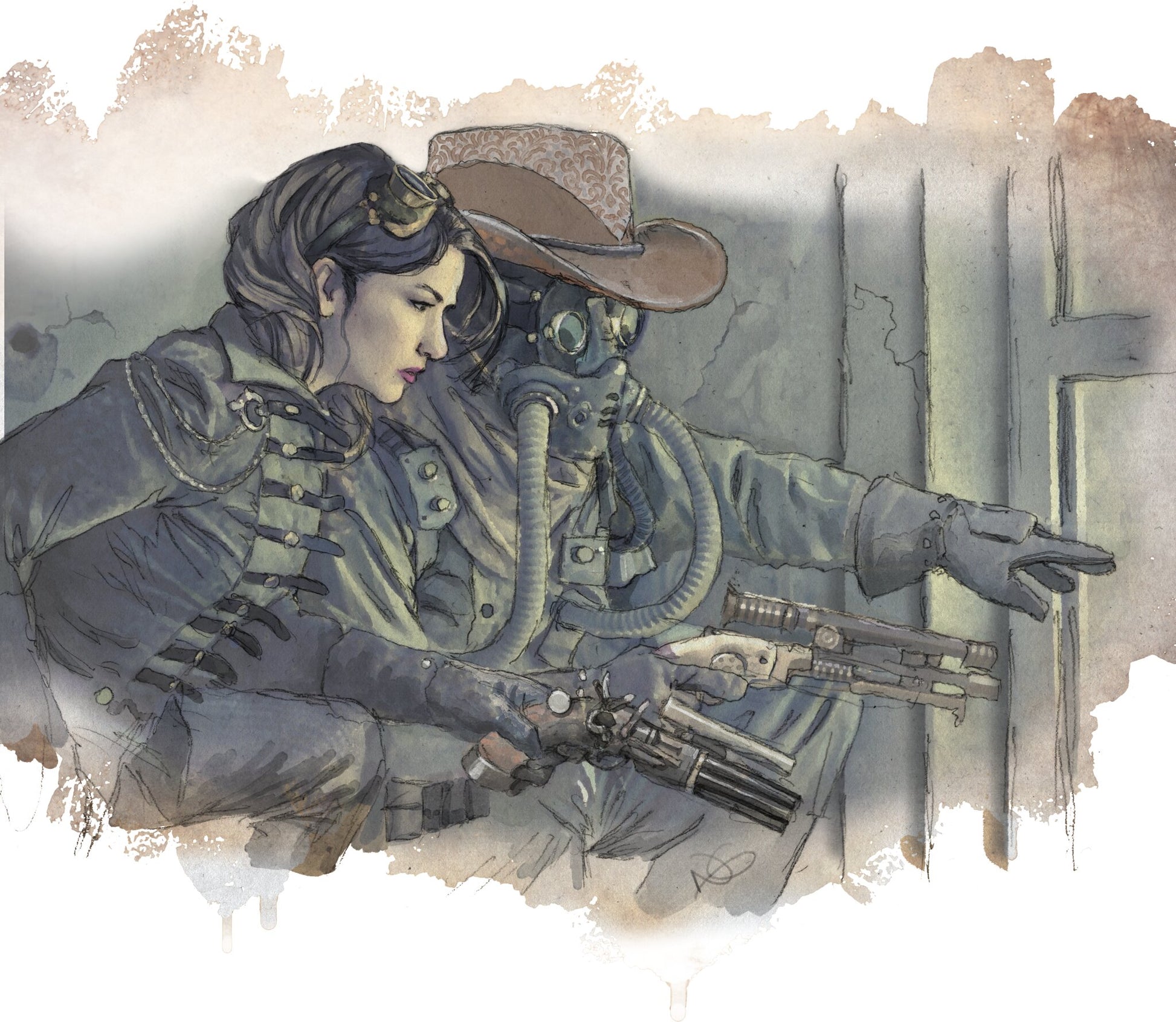 This slam of art-deco, steampunk, and post-apocalypse involves heroes traveling a weird-west fantasy world searching for treasures from a forgotten past. Machines rise from the ruins of a dead empire while unique individuals manifest the magical powers of “smoke.” For everyone else, they survive upon the millions of miles of railroads while exacting justice from a barrel of an enchanted gun.