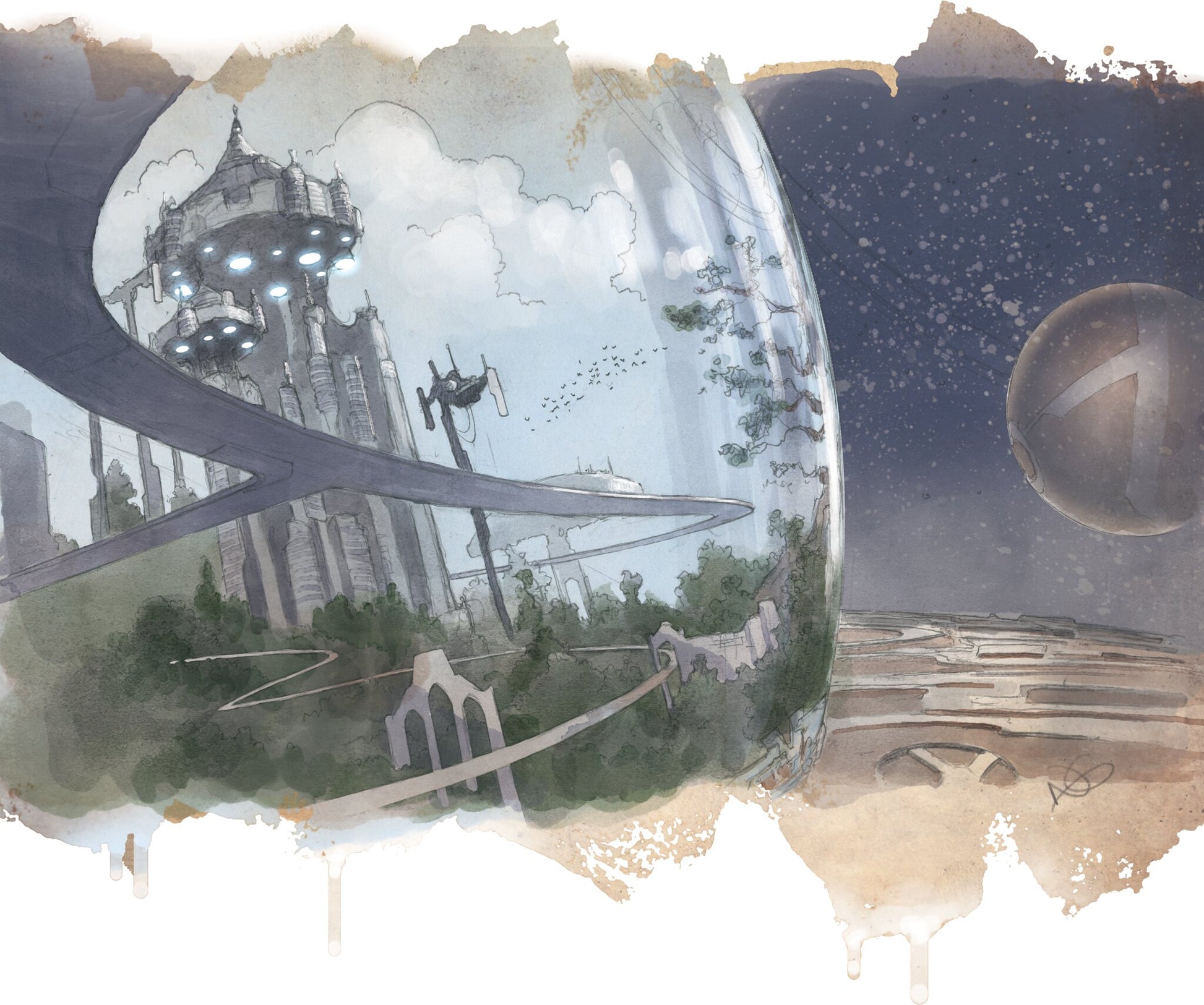 Humans and aliens find themselves trapped upon a gargantuan alien ark. Abandoned and adrift, the residents are forced to explore the catacombs of the strange vessel, scavenging and crafting technology. Employing powered armor and emerging individuals possessing psionic abilities, factions battle for control over resources, technology, and the secrets of their new home.