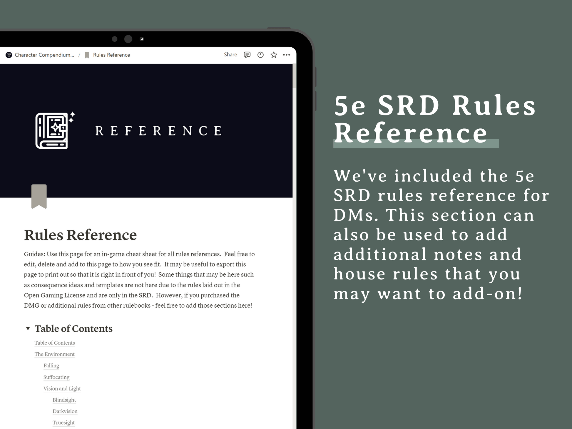 - Get complete support for SRD 5e rules, and enjoy an included reference guide