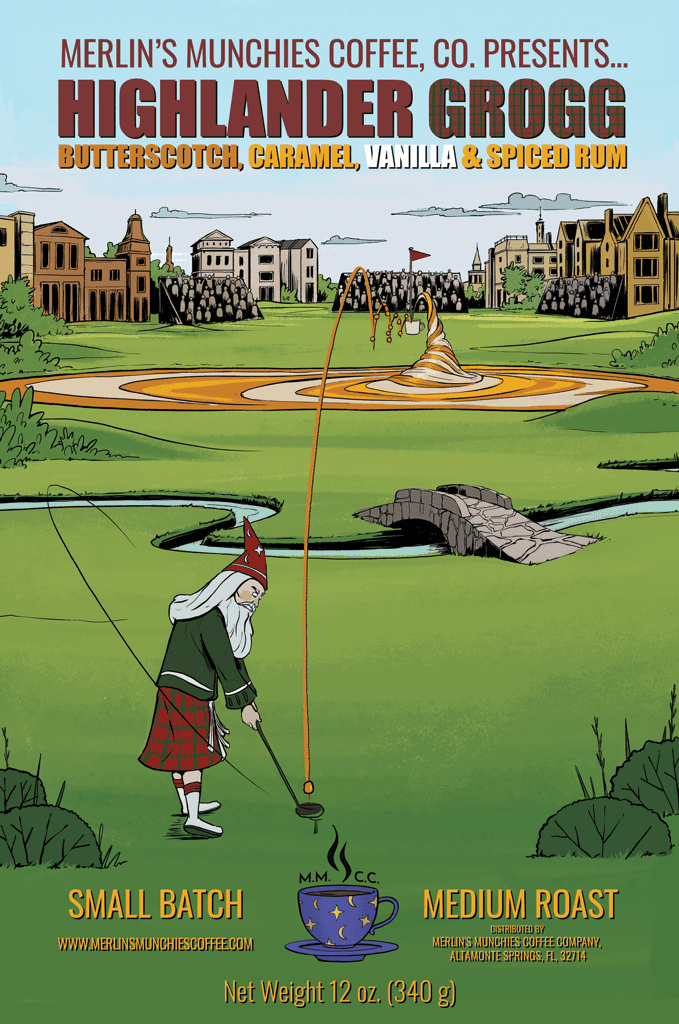 Merlin likes golf... Merlin likes coffee... Merlin likes vanilla, rum, and butterscotch flavors... Merlin likes Scotland... Merlin likes kilts... Merlin combined them all together and just got a hole-in-one with an excellent cup of coffee!