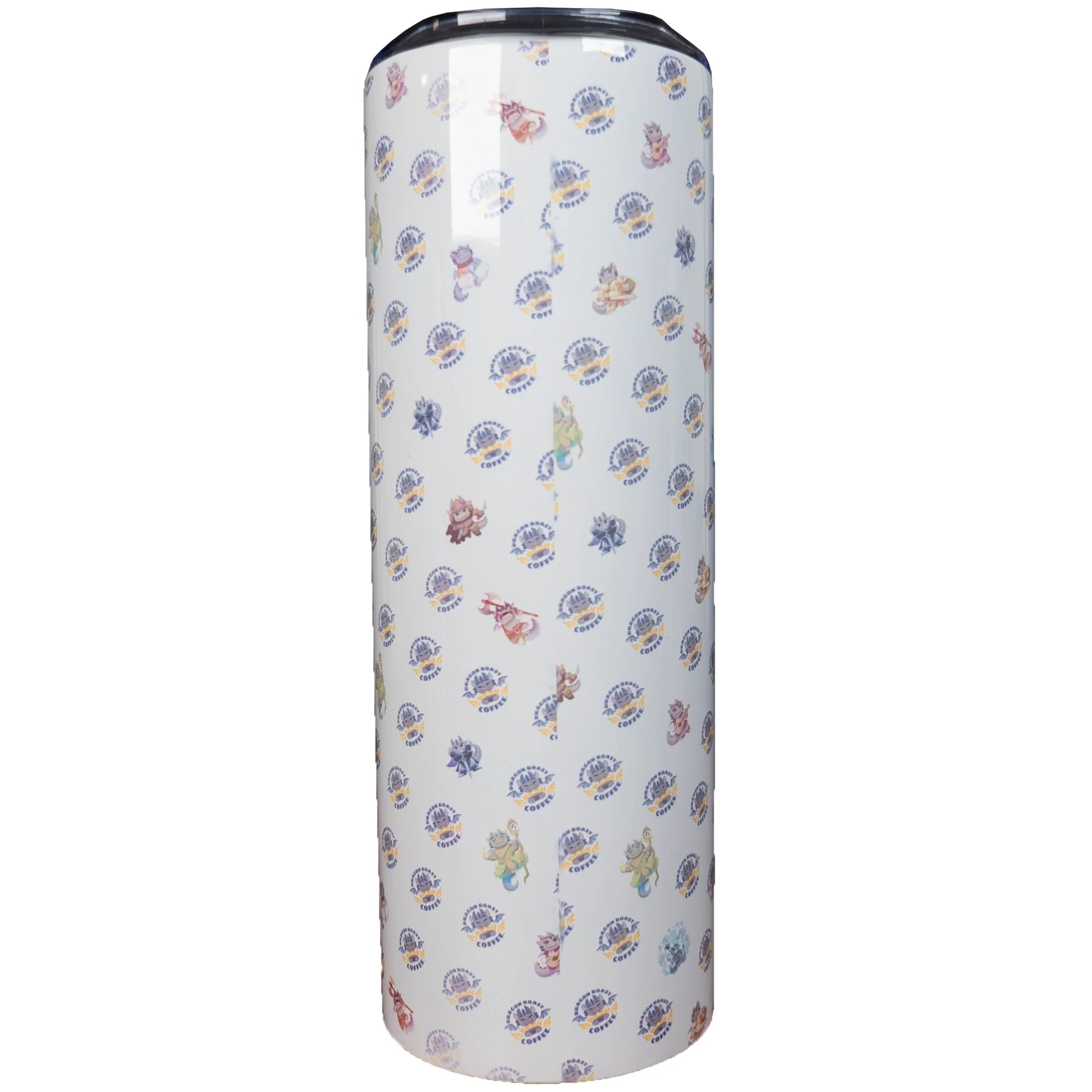 Is our cute logo not enough? How about a pattern full of our party members as well? Show them off to the world with our newest addition to our 20oz tumblers! These are perfect for hot OR cold beverages, keeping your drinks at your preferred temperature for hours. Each tumbler is made by hand in house by our talented staff of kobolds using a chemically bonded printing method to ensure they will hold up across multiple journeys.