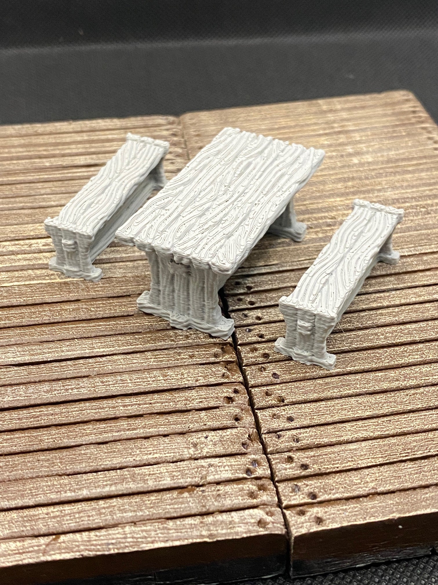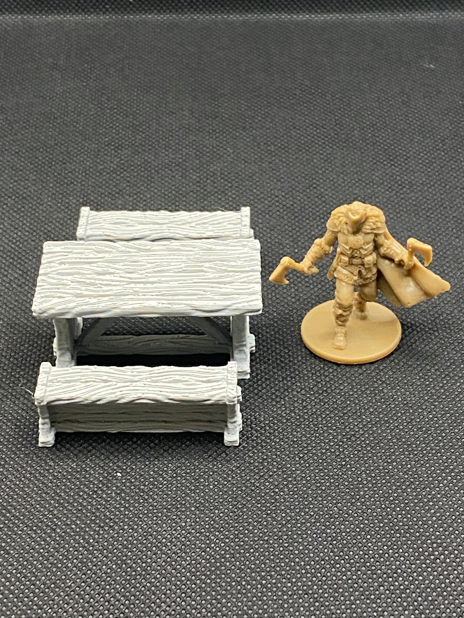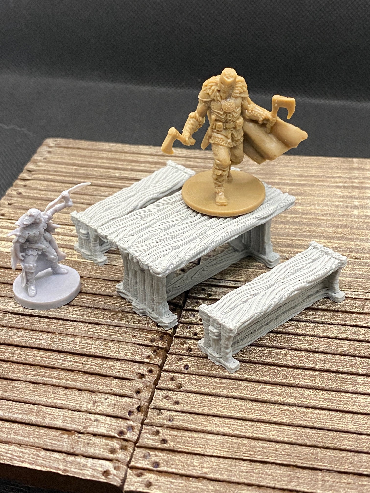 Can't have a tavern, or bar, or restaurant, or heck even a house's kitchen, without some place to sit! This set includes 1 long table and 2 benches!