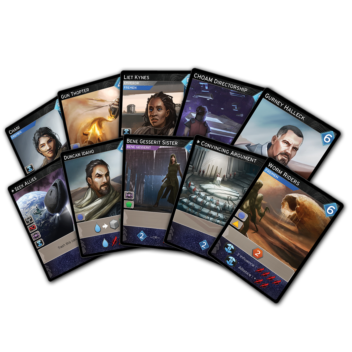 Arrakis. Dune. Desert Planet. Raise your banner above the vast wasteland before you. As the Great Houses of the Landsraad marshal their forces and their spies, whom will you influence, and whom will you betray? A tyrannical Emperor. The secretive Bene Gesserit. The shrewd Spacing Guild. The ferocious Fremen of the Deep Desert. The power of the Imperium can be yours, but war is not the only way to claim it.