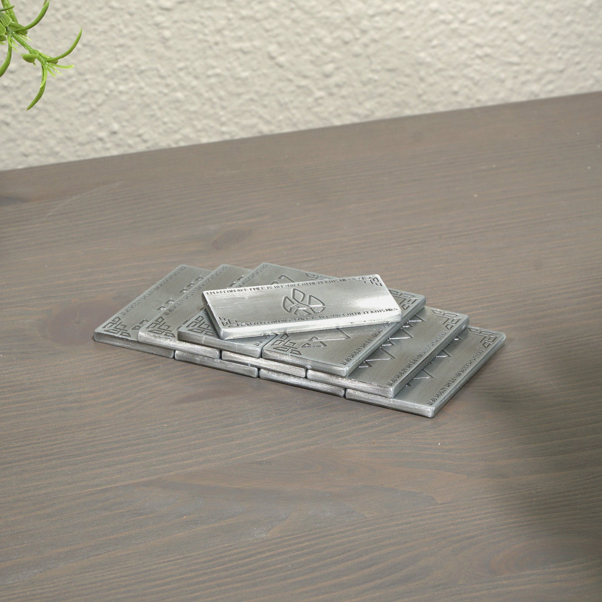 Engraved on both sides with ornate dwarven symbols this 1.5oz bar functions as a hefty accessory for any tabletop campaign, or as the perfect high value currency in any fantasy game.=