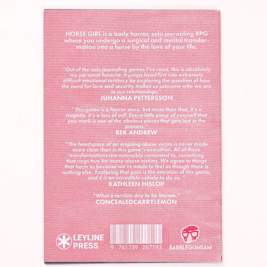 Horse Girl is a solo GM-less journaling game in which you will document your surgical and mental transformation into a horse by the love of your life. You are a woman in her late 20s. Life has not been kind to you, as much as you have tried to make things work. Your career was a mess, you were estranged from those who were supposed to love you, and you felt utterly lost in your life, not knowing who you were and what you were supposed to do.