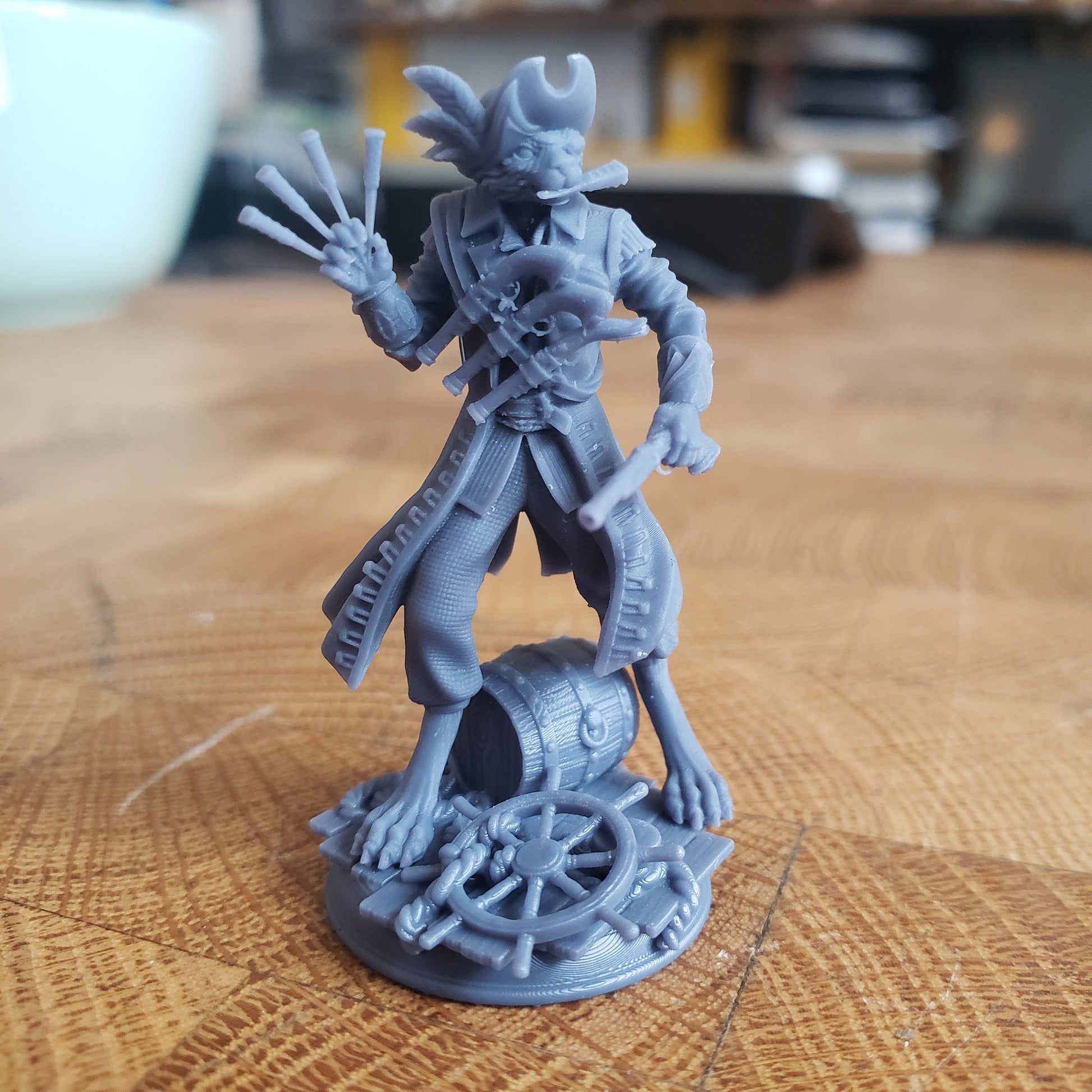 All our 3D printed minis come free of supports and fully cleaned and cured. They are supplied unprimed & unpainted, and they ship assembled unless the miniature has several interchangeable accessories included with it, or the customer requests it to be shipped unassembled. Stock photos are 3D renders of the models, and are not the color we typically print in (we use Navy Grey as our default). Any additional photos on a mini page are going to be actual photos of the models we print!