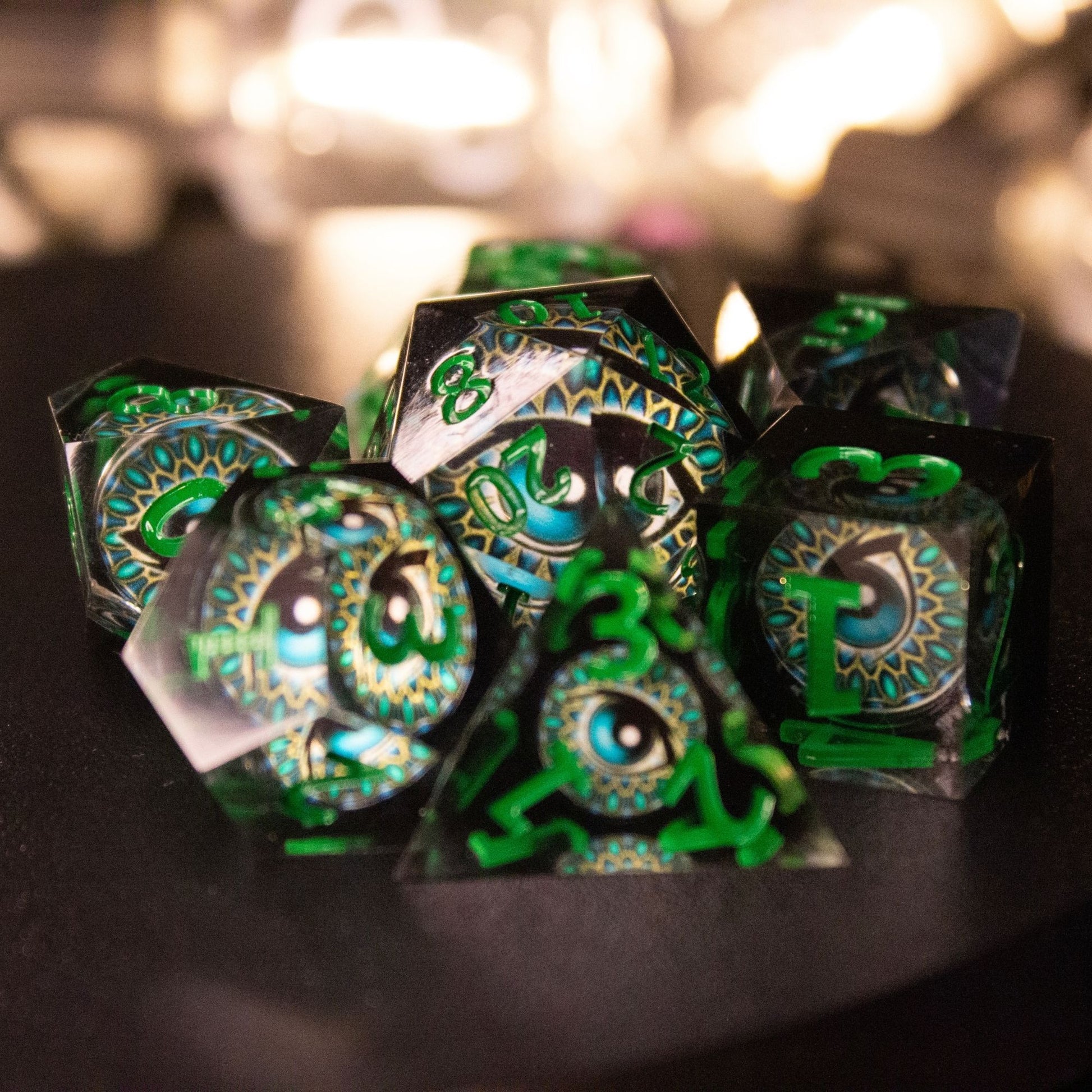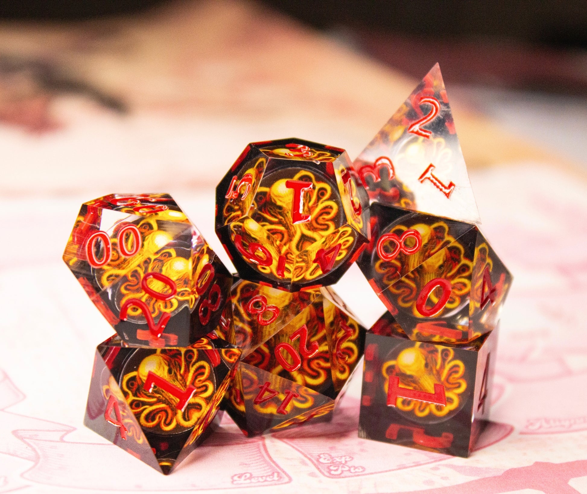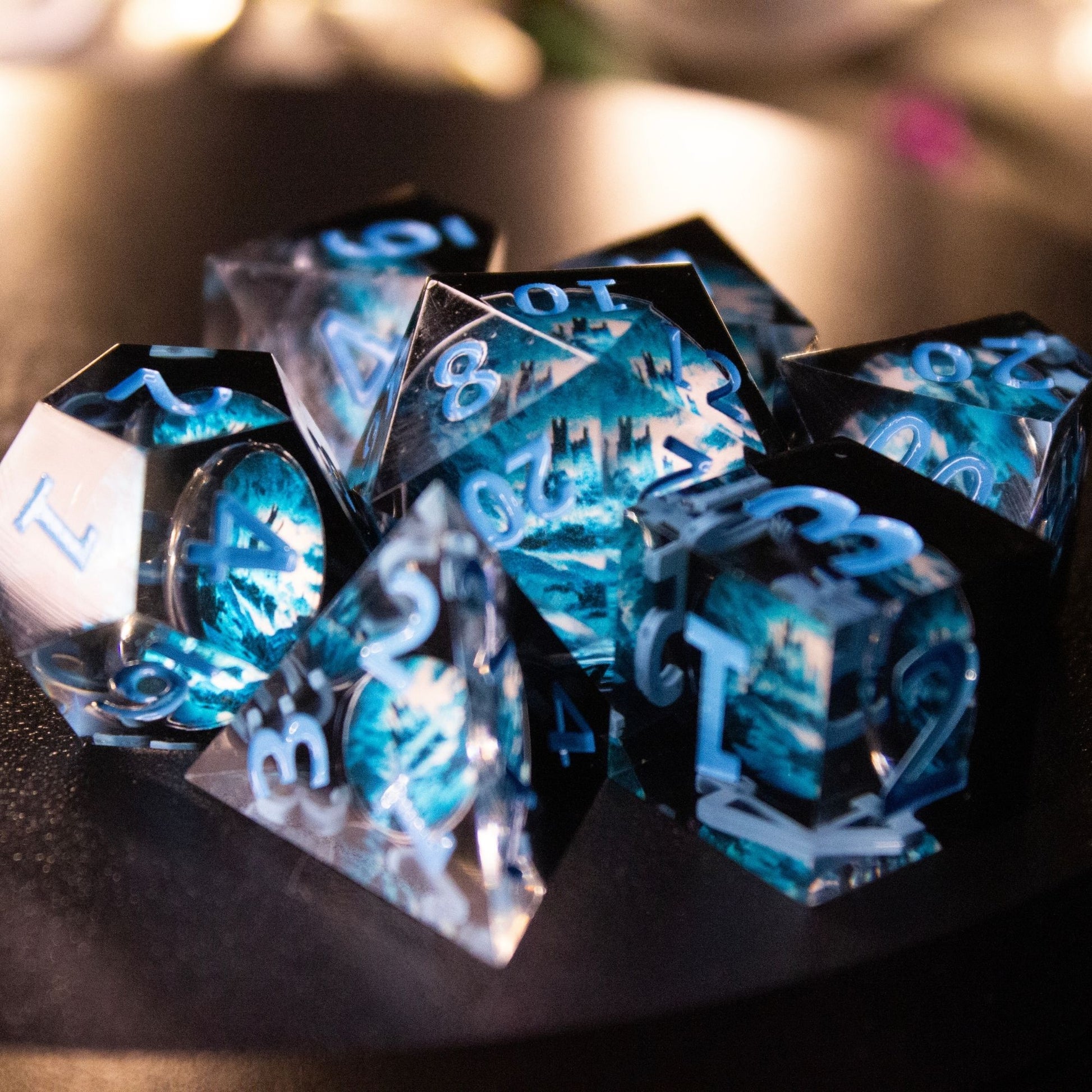 - Handmade styles of intricately designed RPG dice made from hard resin