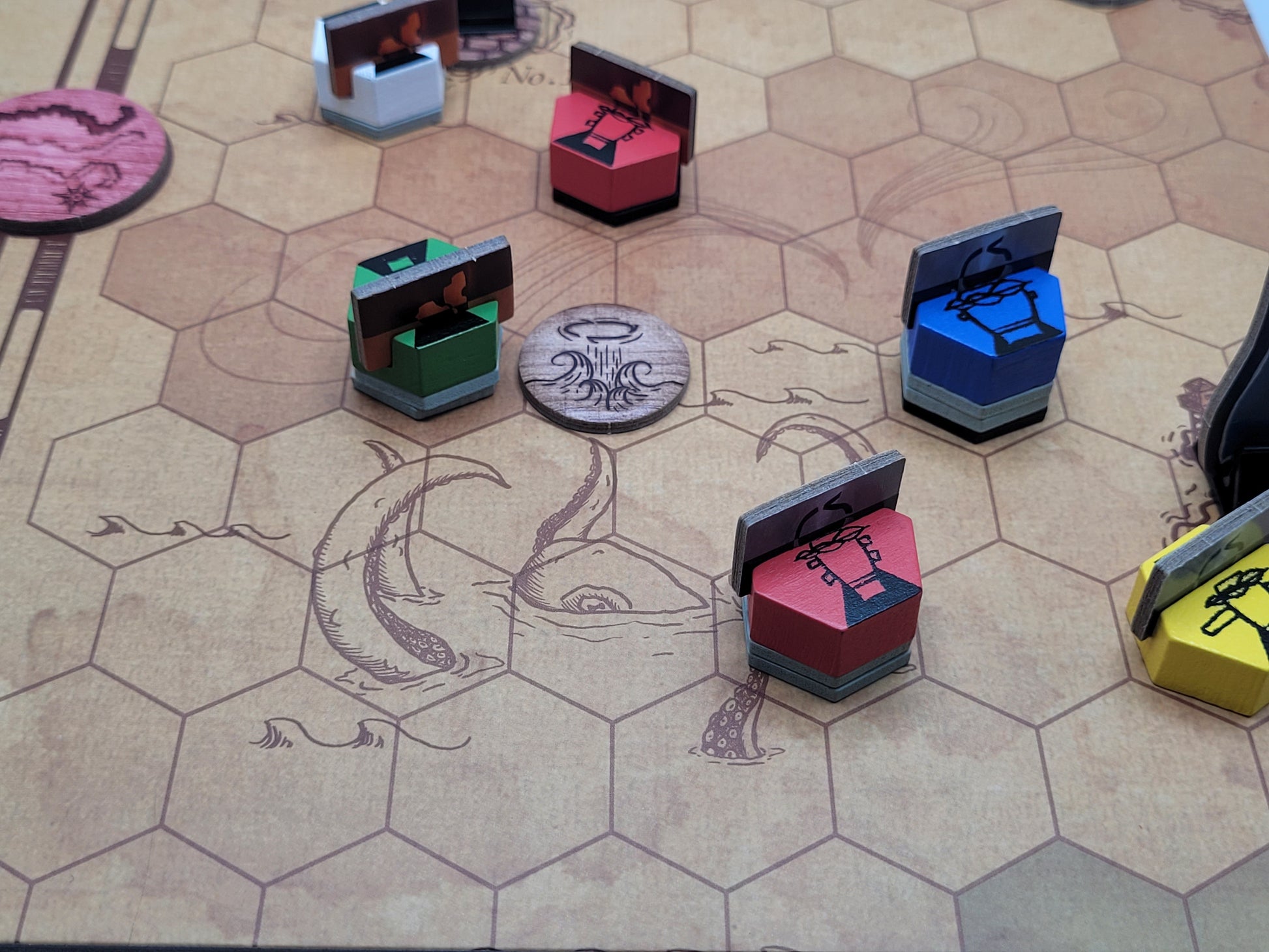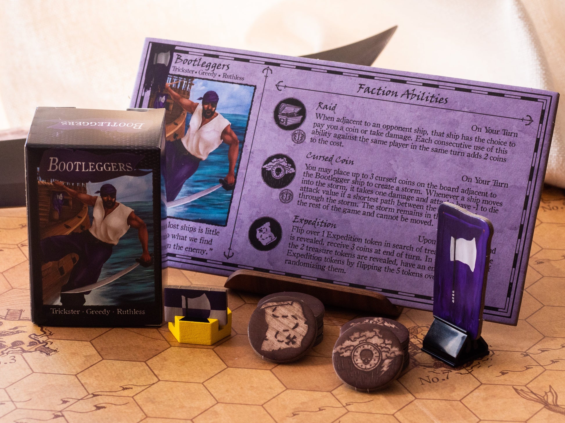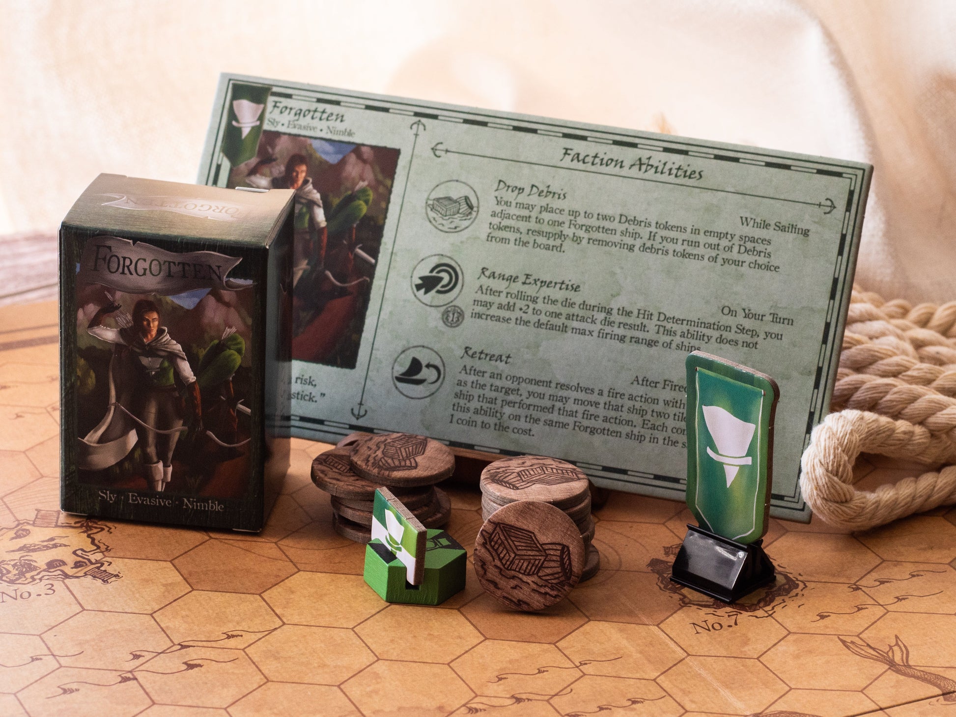 Pick your battles carefully; there are no reinforcements to look forward to. Turn the tide of battle and pursue victory by firing cannons at the enemy, sailing ships into positions of strength, seizing islands to expand your control of the sea, and making use of powerful faction abilities. The first player to capture 6 islands or the last player with ships still sailing is victorious and pronounced the Old Salt.