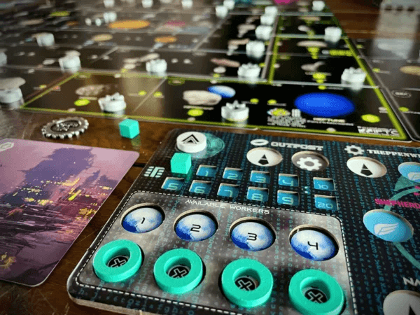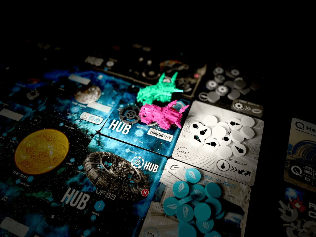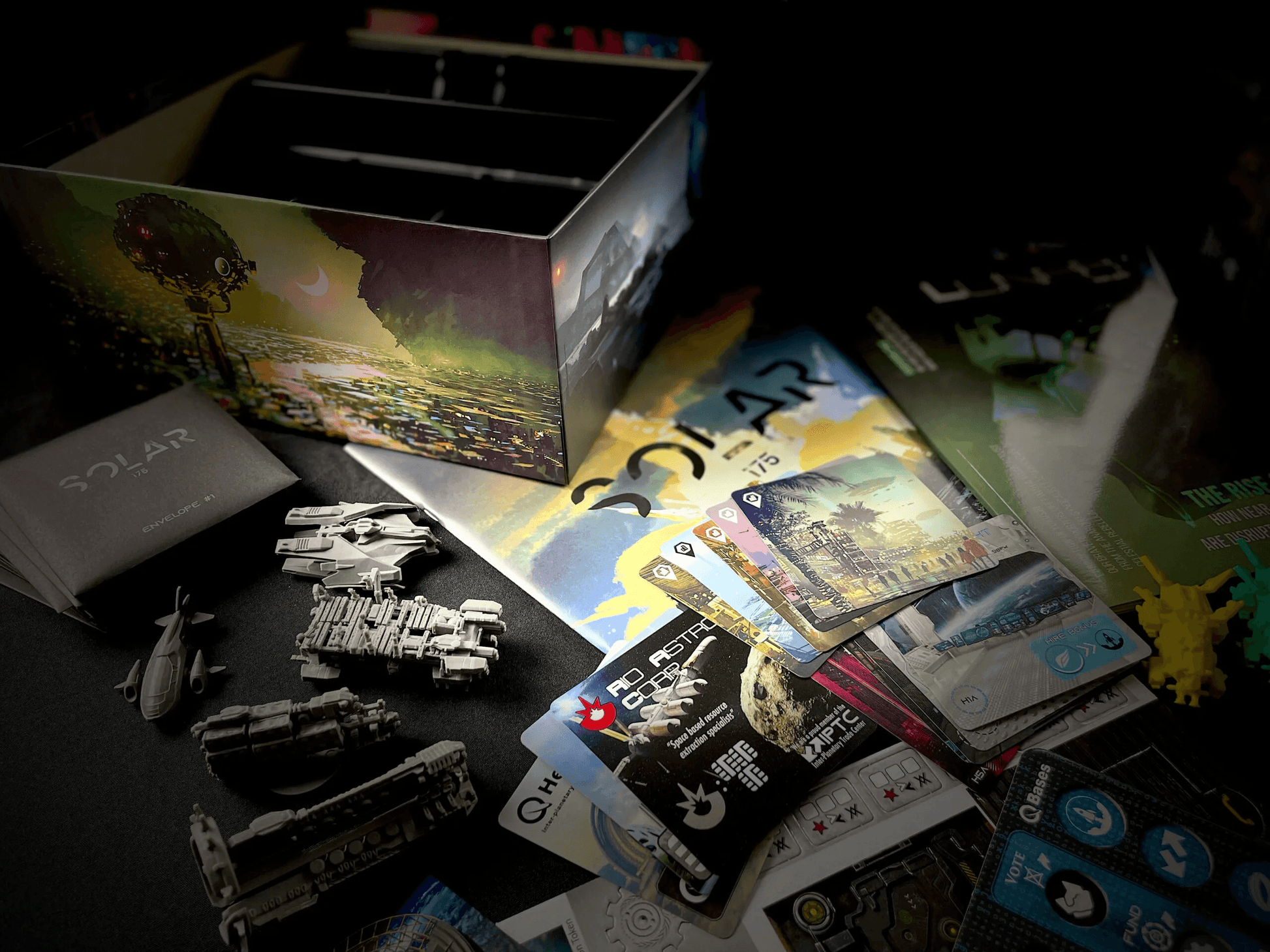 Solar 175 is an epic, euro-style, legacy experience for 1-4 players set in a dystopian, sci-fi future. The game utilizes an innovative fusion of bag-building, area control and worker placement. It is inspired as a fusion between classic euro games such as Orleans and El Grande and a unique thematic and evolving universe. The game involves immersive worldbuilding and engaging narratives, making it rich on theme.