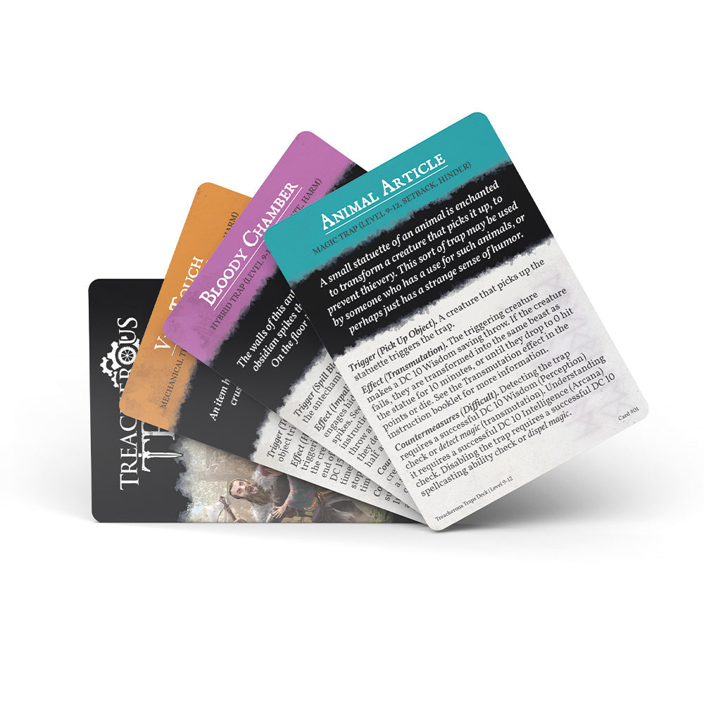 Save time while prepping or grab traps on the fly! Inside you’ll find 50 premade trap cards to challenge your level 9-12 party, ranging from minor setbacks to deadly threats.